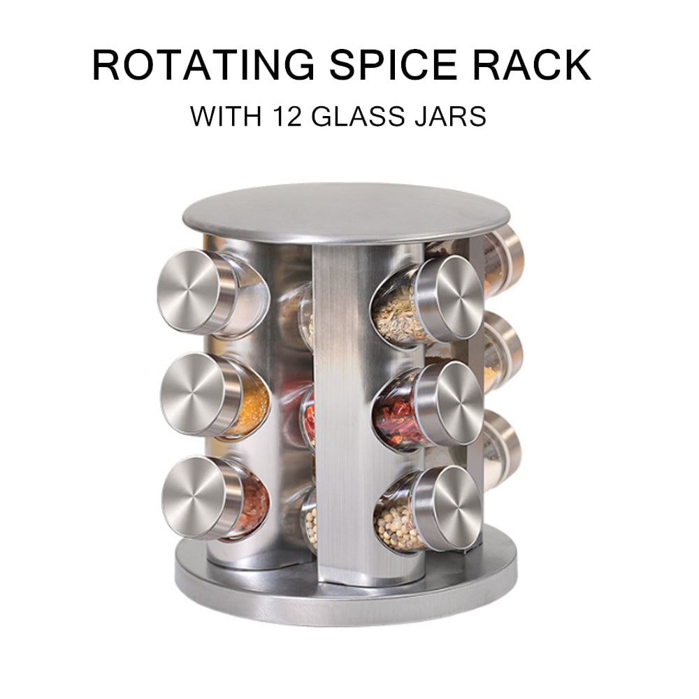 Keep herbs and spices within easy reach with this revolving countertop herb and spice rack. It is designed to hold 12 Jars and sits on the kitchen bench keeping your spices organised and tidy. The refillable glass jars have a screw top lid to keep your herbs and spices fresh and shaker top to control the amount of spice used.
