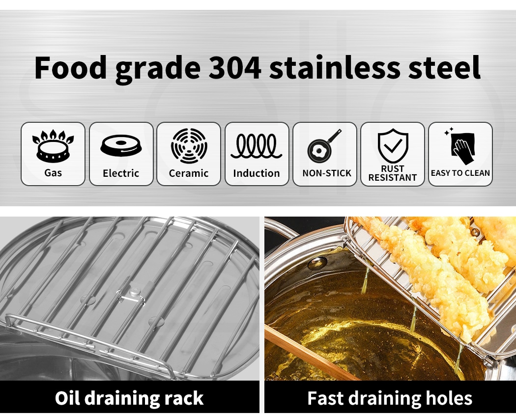 Drain your deep-fried goodies right on your pot’s lid. Use the inbuilt draining rack to save oil. All the drained oil drips right back into the pot ready to be reused.