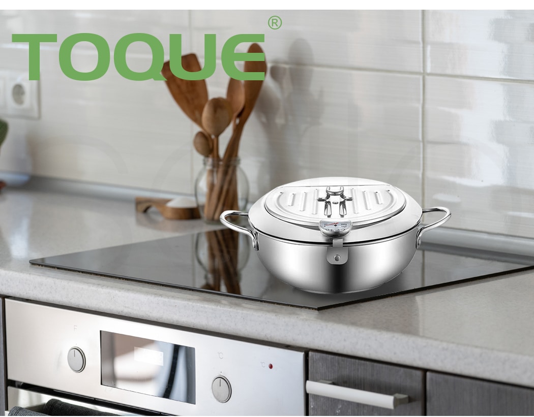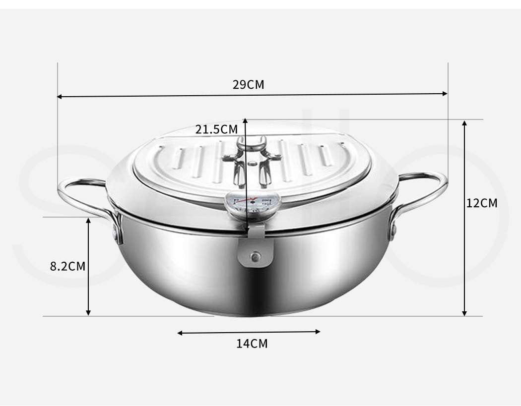 Heat the oil up to the right temperature for your food. Use the rmometer to monitor the temperature until things are right. Drop your tasty food in and save time cooking.